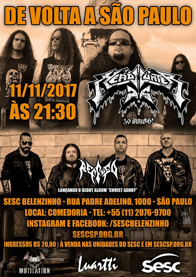 Home > Shows > HEADHUNTER D.C. & REFFUGO em São Paulo HEADHUNTER D.C. & REFFUGO em São Paulo No dia 11 de novembro de 2017 Local: Endereço: R. Padre Adelino, 1000 - Belenzinho Ingresso: R$ 20,00 - Horário as 21h30 Death Metal Headhunter D.C. Reffugo Shows